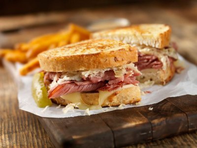 Put the rounds of carrot and pickles and crescents of celery root and lettuce leaf between the slices of the sandwich.